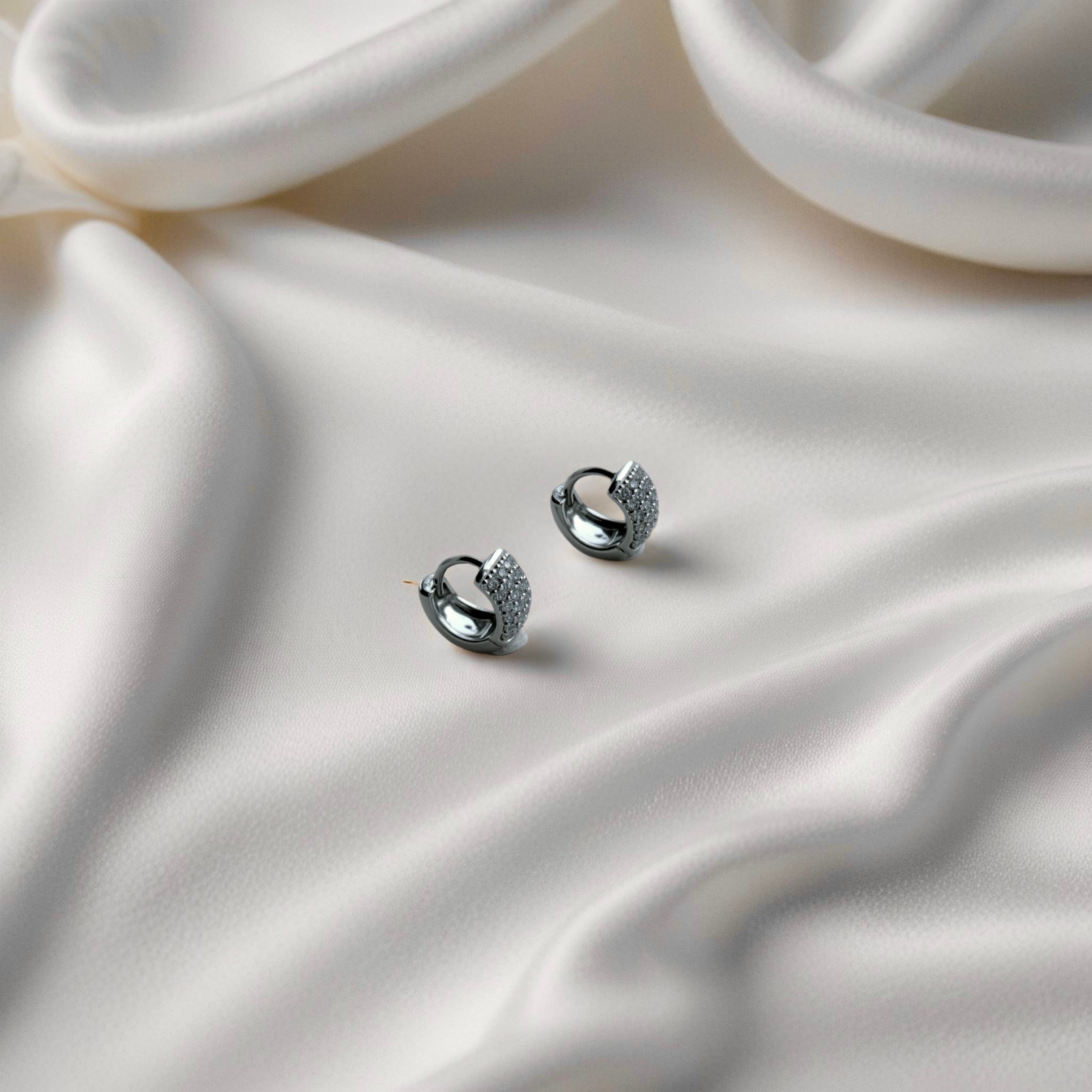 しっかりフォルム。小ぶりながら存在感のあるLUMINA miniは、正面に施されたキュービックジルコニアのパヴェが耳元で静かに輝きます。清潔感あるシルバーカラーと、当店独自の6層コーティングによる高い耐久性で、デイリーにも合わせ付けにもぴったり。