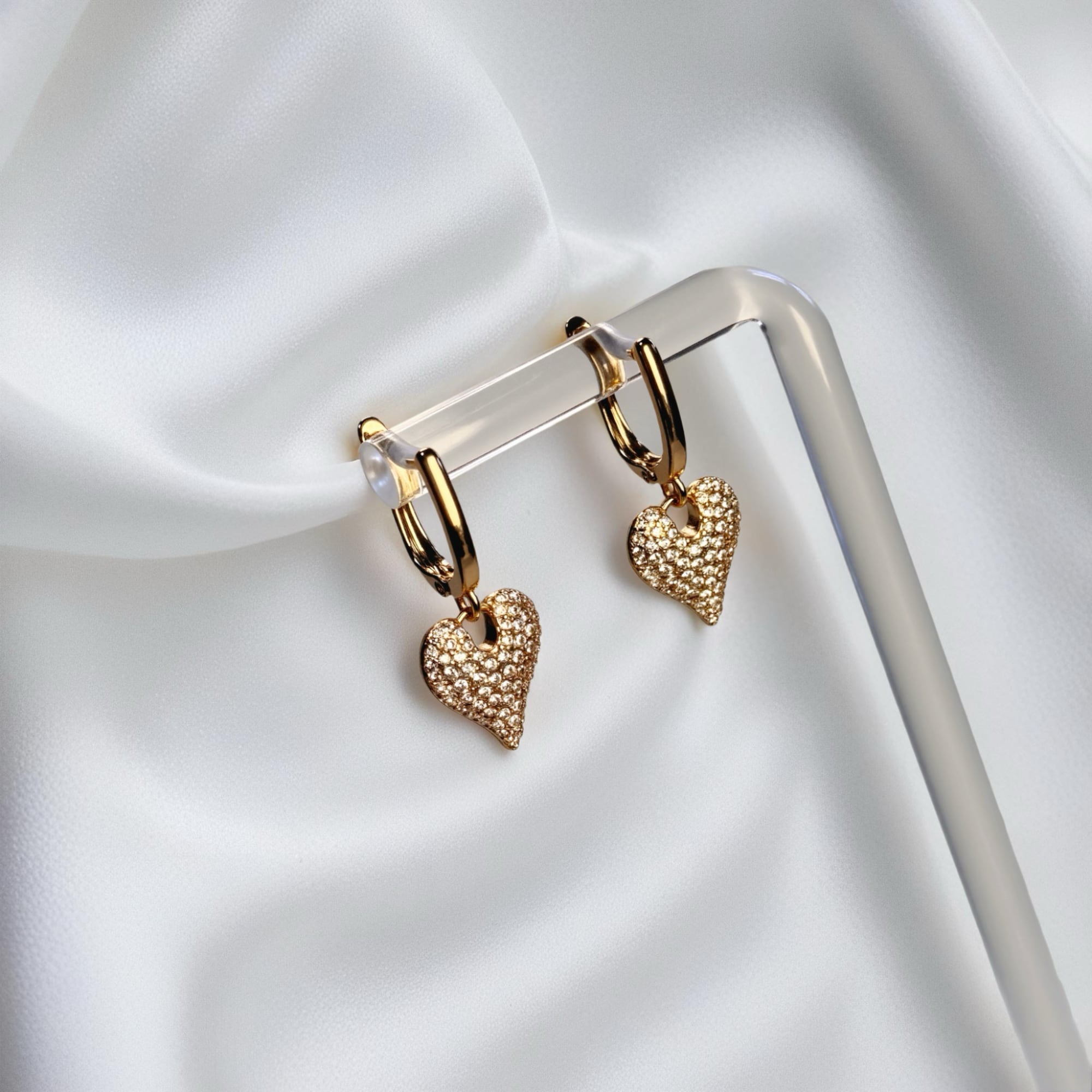 18Kコーティングのリングピアスに、エレガントなハートモチーフをプラス。