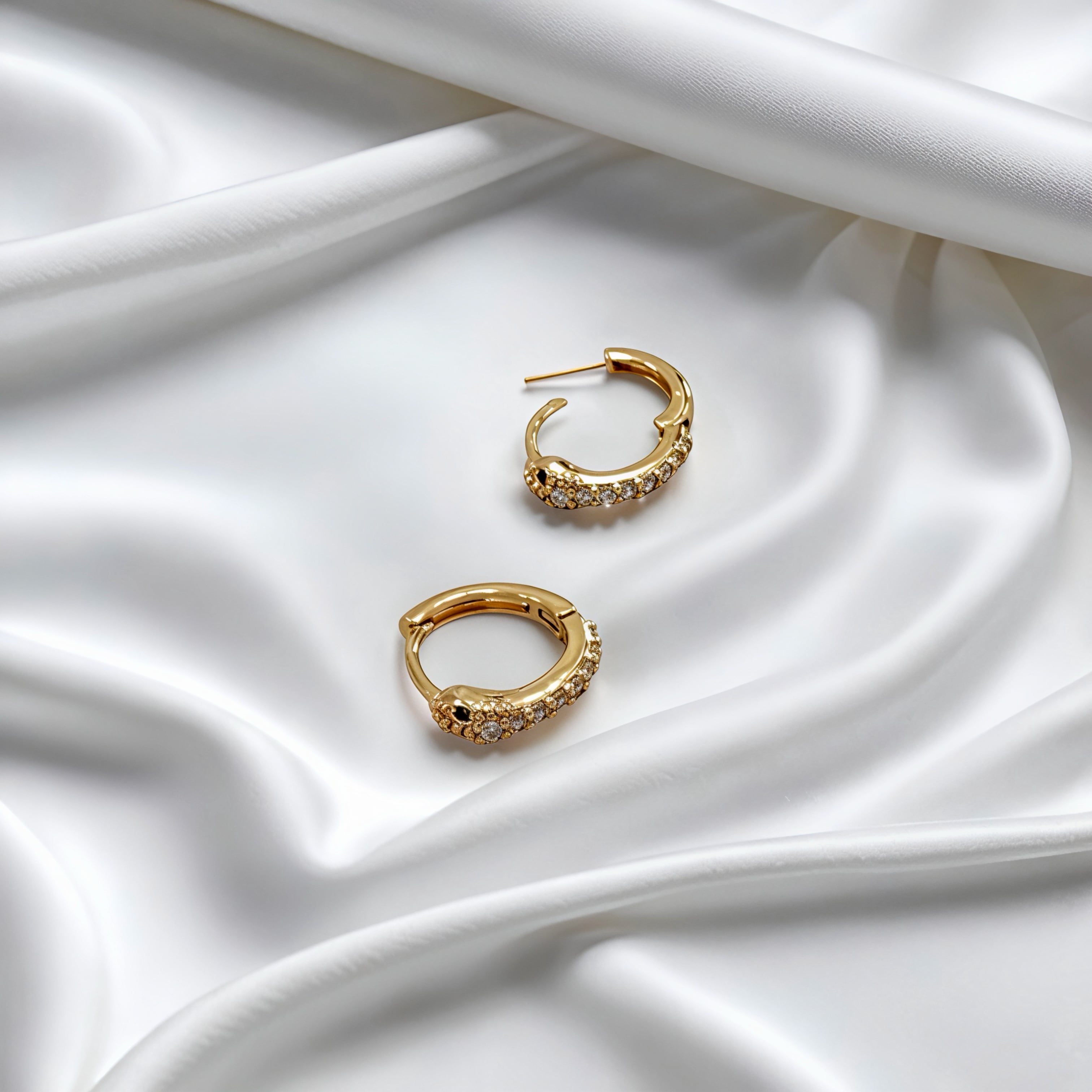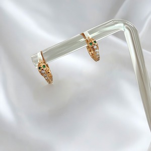 蛇を思わせるフォルムに、繊細なジルコニアが敷き詰められた個性的なピアス。