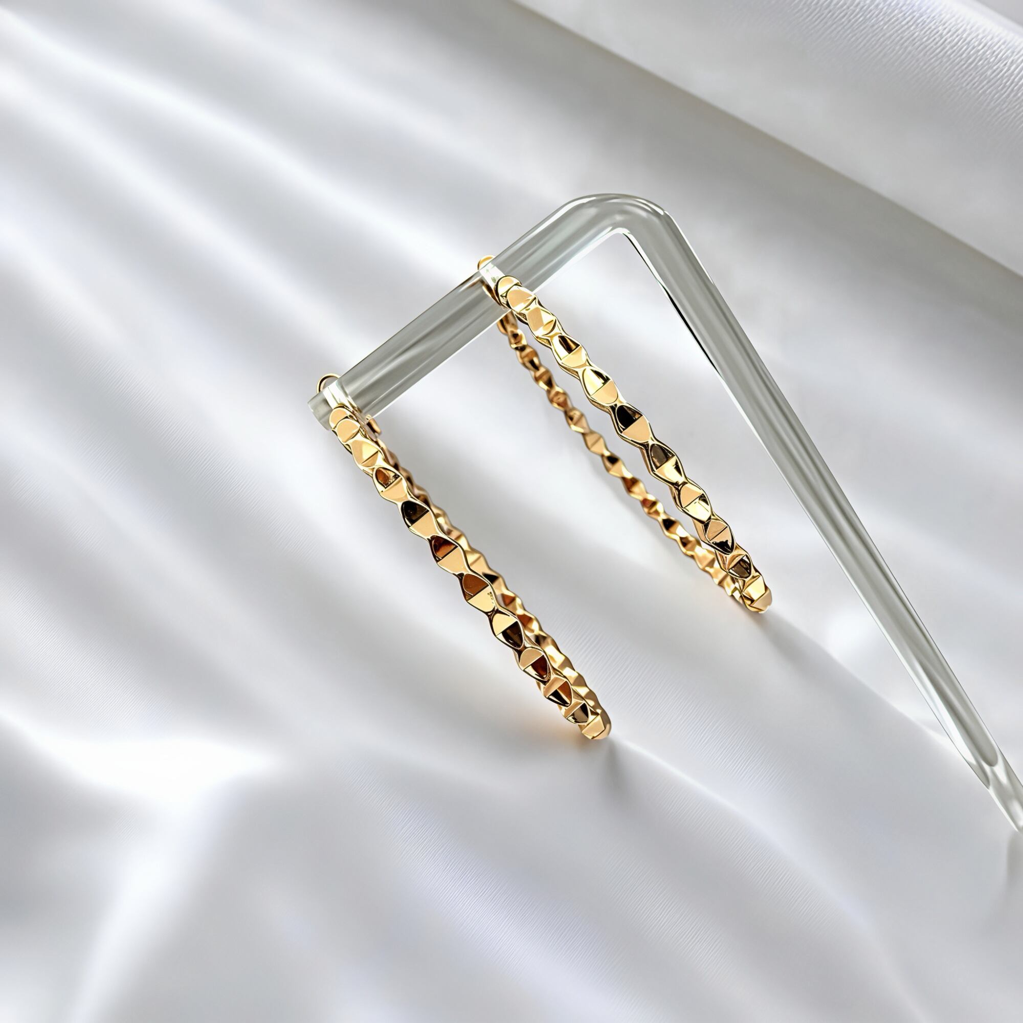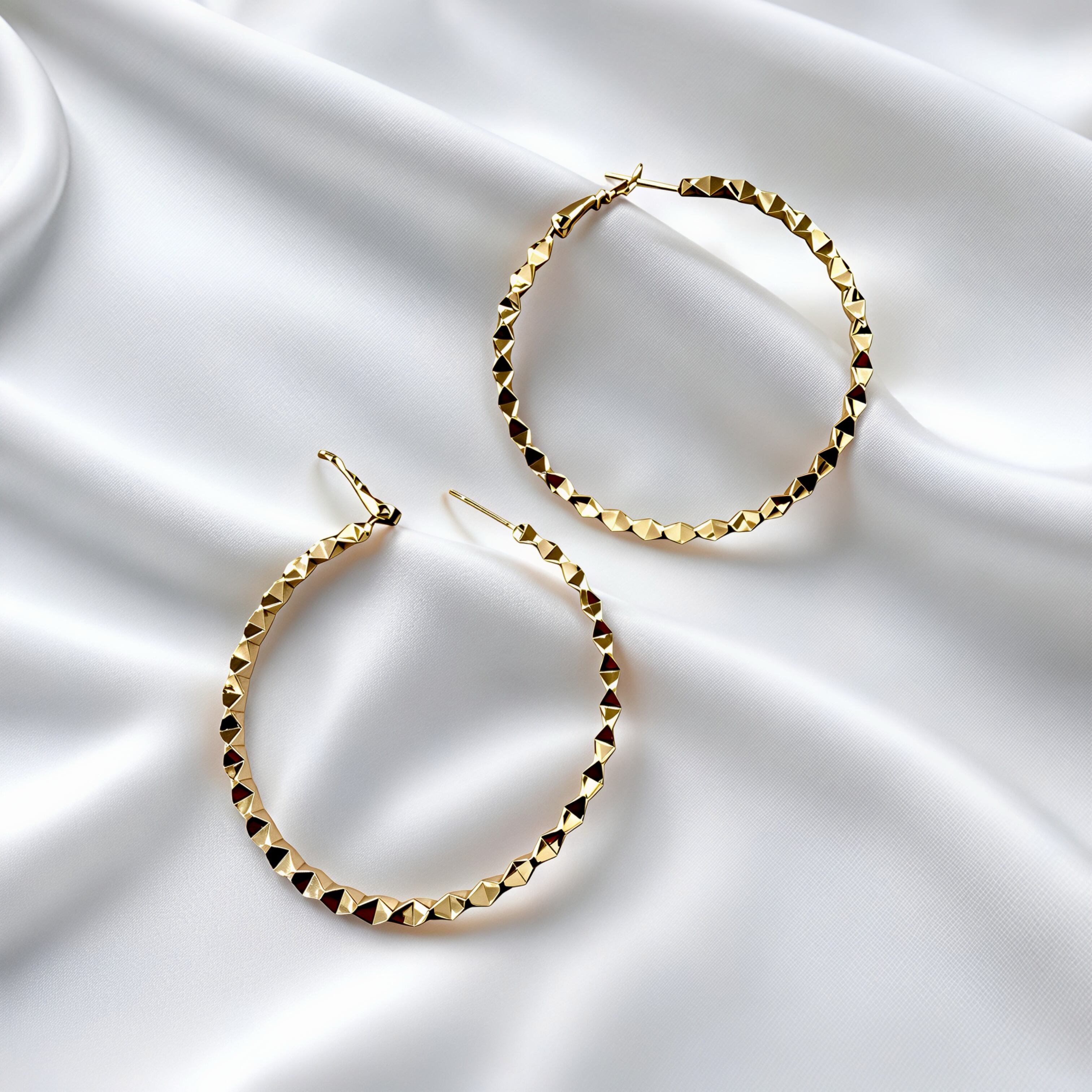 石を使わず、フォルムそのものの美しさを際立たせた、大ぶりで洗練されたフープピアス。