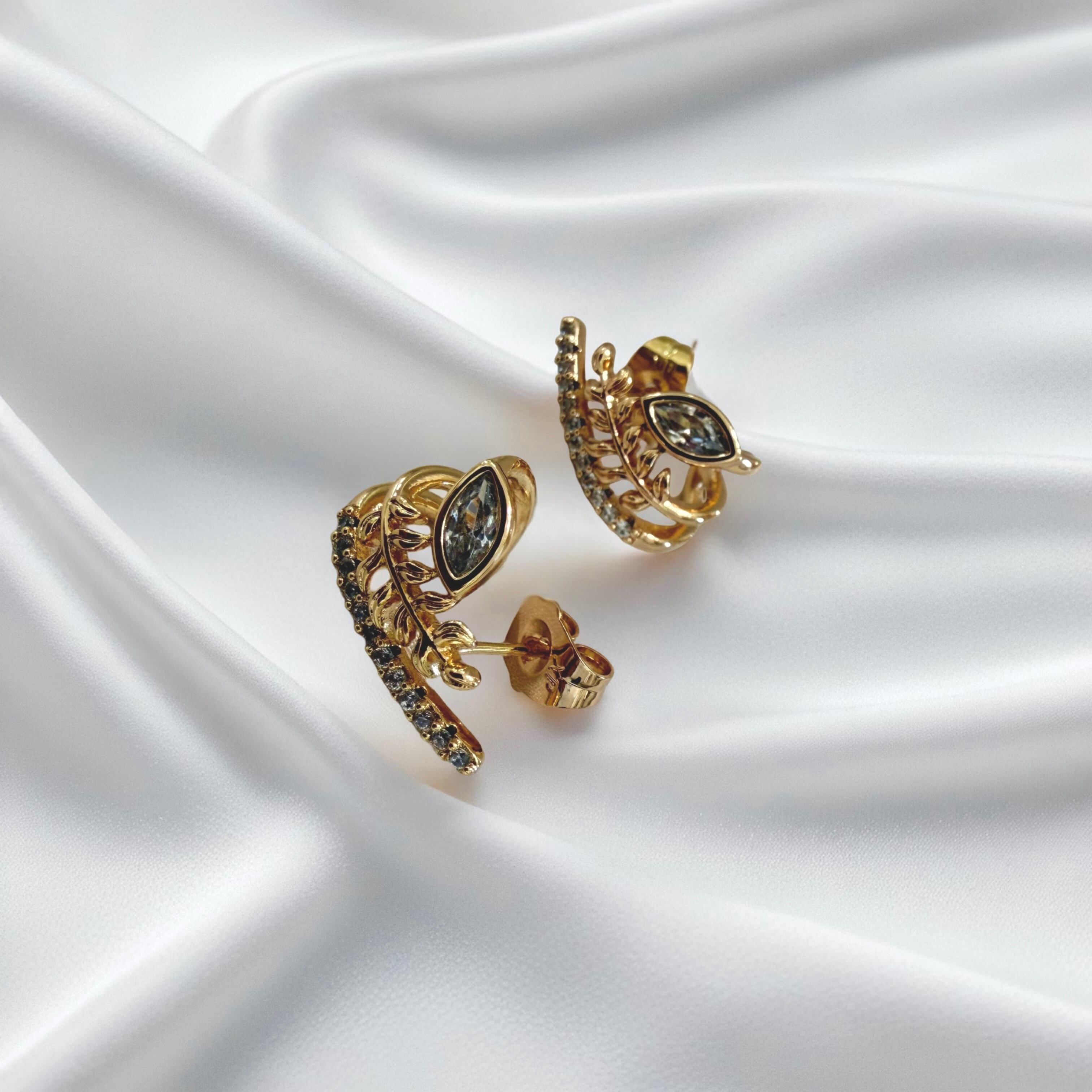 繊細なリーフモチーフに、ジルコニアが丁寧に敷き詰められたエレガントなピアス。