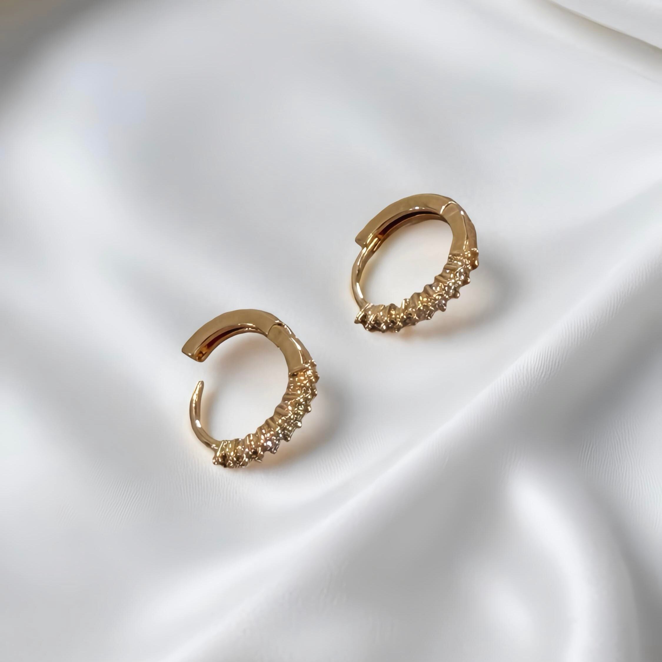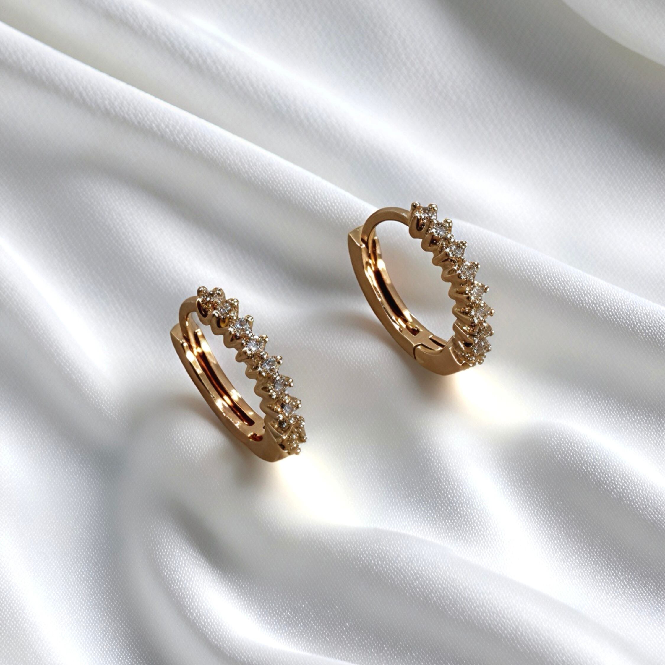 小粒のキュービックジルコニアが繊細に並ぶ、ミニサイズのフープピアス。