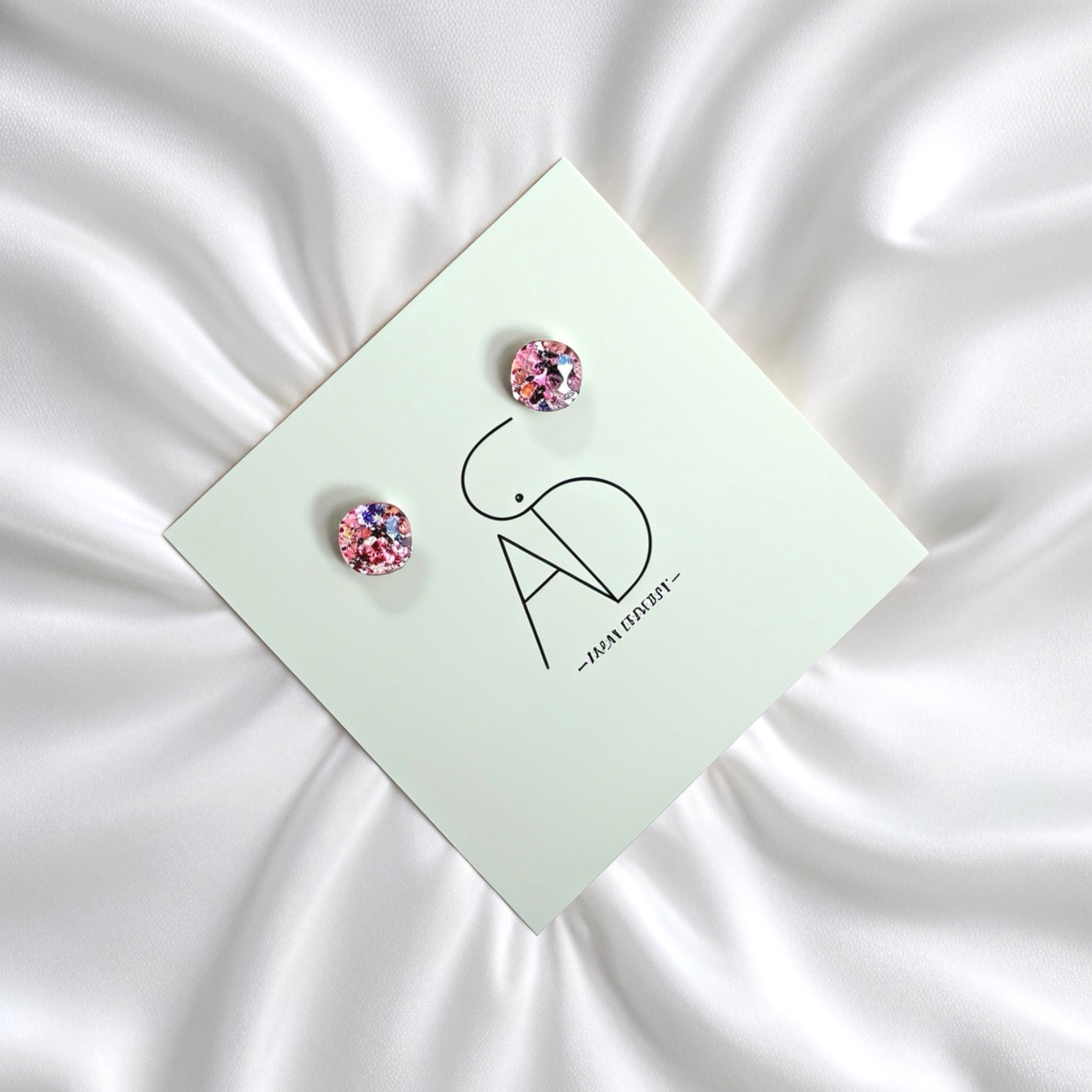 直径約0.8cmの小ぶりなサイズで、耳元にふんわりとした彩りを添えます。