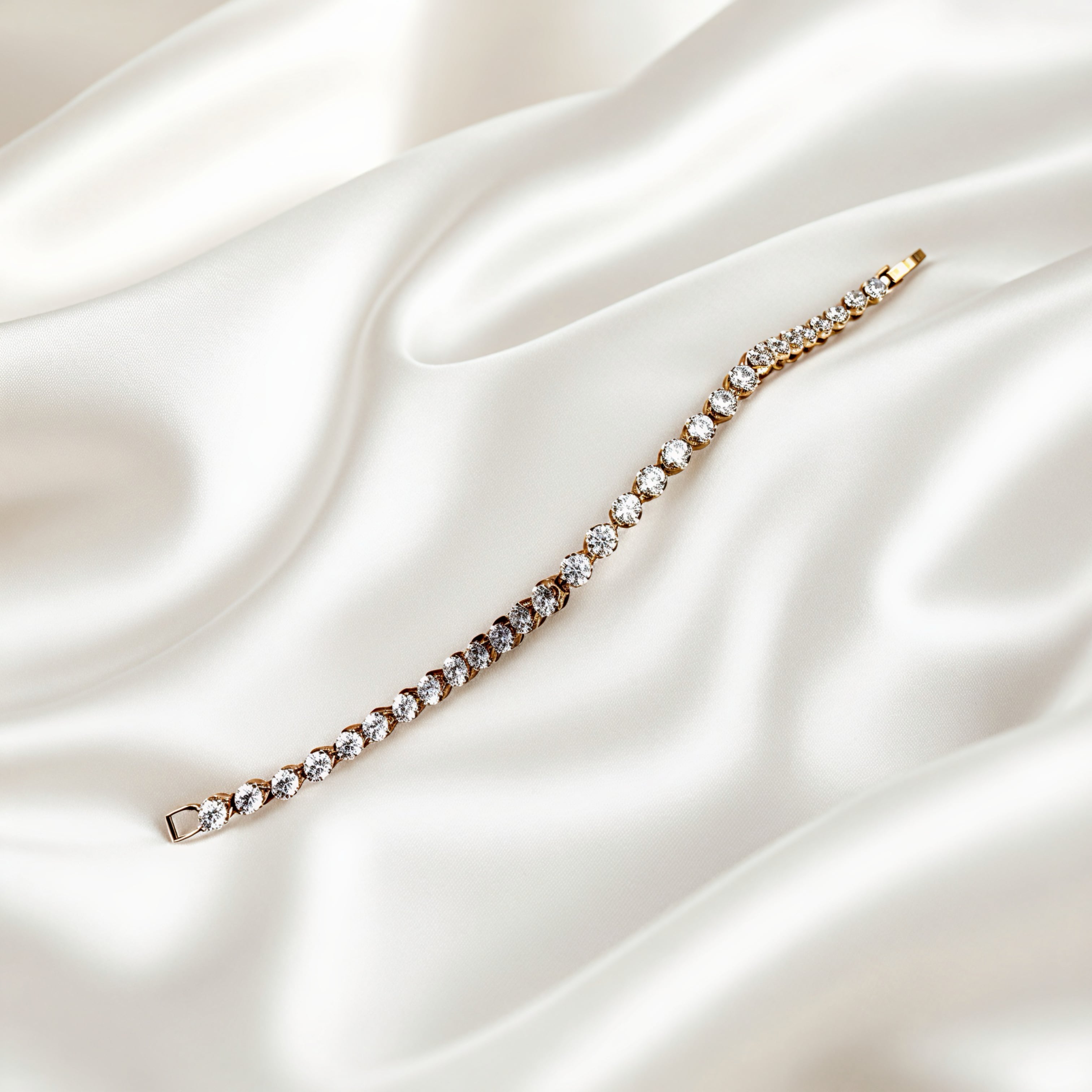 一粒一粒が美しく輝くキュービックジルコニアを連ねた、18Kゴールドコーティングのリヴィエールブレスレット。
